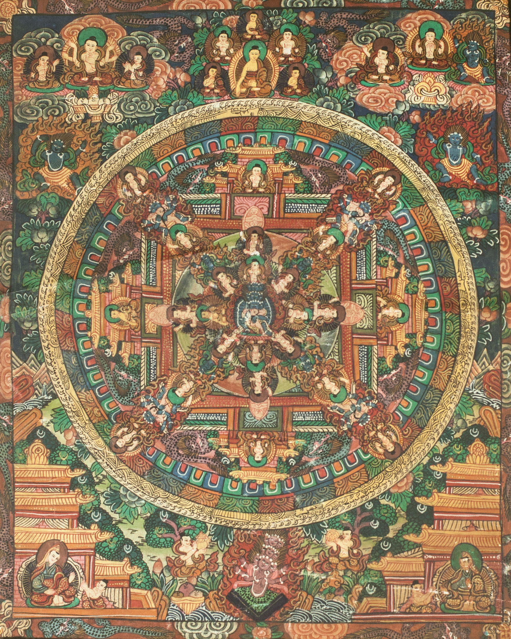 Das Thanka ist aus einer Privatsammlung, es weißt leichte Gebrauchsspuren auf die auf den Bildern deutlich zu erkennen sind.