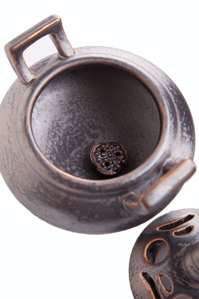 Erlebe stilvolles Räuchern mit hochwertiger Keramikkunst aus dem chinesischen Reich. Dieses traditionelle Räuchergefäß wird in Handarbeit hergestellt und besticht durch seine edlen Details und feinen Goldglimmer-Akzente, die ihm eine wertvolle und ehrwürdige Ausstrahlung verleihen.