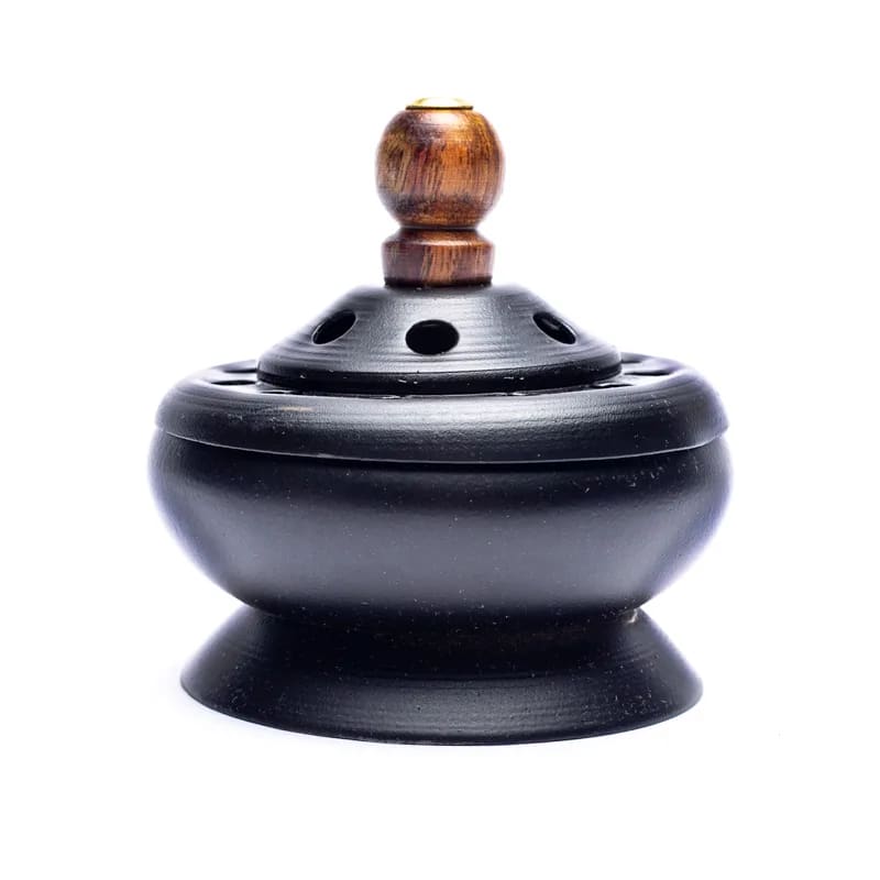 Weihrauchbrenner mit Deckel zum Verräuchern von weißen Salbei oder Palo Santo. Auch für lose Kräuter-Räucherstäbchen, Räucherkegel und Räucherstäbchen geeignet.
