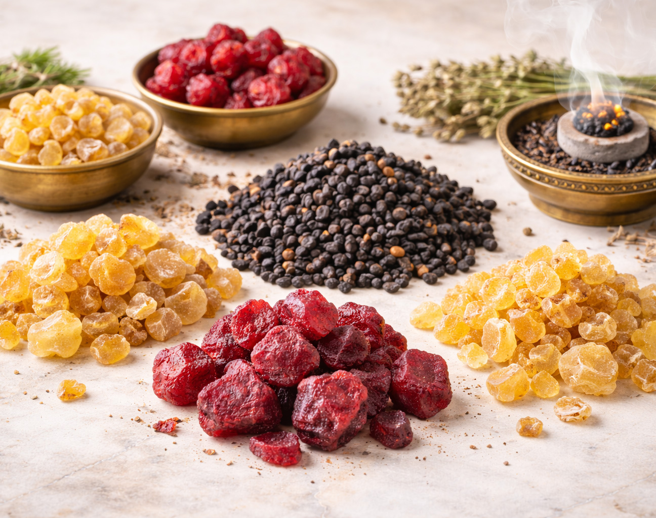 Reine Harze: Von kostbarem Weihrauch in verschiedenen Qualitätsstufen bis hin zu seltenem Drachenblut oder heimischem Zirben- und Kiefernharz. Harze bieten eine besonders intensive und lang anhaltende Dufterfahrung.