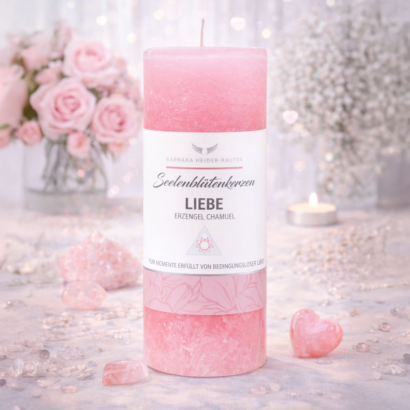 Dann ist die rosa Seelenblütenkerze Liebe genau das Richtige für Dich!